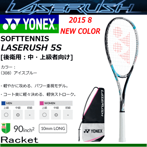 ▼ 限定グリップバンドプレゼント ▼ ▲▲ プレゼント購入ページはこちら ▲▲ ※プレゼントはラケットとプレゼントグリップバンドを一緒に買い物かごへ入れて購入しないと発送いたしません!! 数量限定のためご了承とご協力をお願い致します。 商品発送後、プレゼントを希望される方は発送いたしますが送料をいただきますのでご注意ください。 YONEX(ヨネックス)ソフトテニスラケット レーザーラッシュ5S・軽やかに攻める、パワー重視モデル。・コート奥に軽々決める、軽快ストローク。■フェイス面積:90inch■全長:700mm 10mmLONG■素材高強度カーボン+高弾性カーボン+X-フラーレン+ライトフィールカーボン■サイズ:UXL1、UL1、SL1■カラー(308)アイスブルー[NEW!!](151)ブライトイエロー■バランスポイントUXL:平均295(mm)UL・SL:平均290(mm)■推奨張力UXL:20〜30(lbs)UL・SL:25〜35(lbs)■推奨ストリングNSG115HP、CSG650XI■日本製■テクノロジーX-フラーレンライトフィールカーボンBCシャフトアームシェイププレーシフトグリップSD-GRID※お取り寄せ品です。発送まで2〜3日程、お時間を頂きます。※手作業での在庫更新の為、欠品が発生する場合がございます。予めご了承下さい。 カスタムしたい方はこちら☆lr5sメーカー希望小売価格はメーカーサイトに基づいて掲載していますラケット購入時ガットを張り上希望の方は返品・交換等ができません。2015年8月 NEW COLOR !!YONEX(ヨネックス)ソフトテニスラケットLASERUSH 5S/レーザーラッシュ5Sインパクトの瞬間に爆発的な弾きを生む新形状シャフト「BURST(爆発力)+CORE(核)」を意味する新たなシャフト形状。剣先部分を厚く、太くする設計により、シャフトの剛性が大きく向上。打球時のシャフトのねじれ・しなりを抑えることで、キックポイントが上部へ移動結果、初速(弾き)が7%アップし、直線的でキレのある、鋭い軌道の打球を実現。1.NEW SHAFT DESIGN従来品と比べ、シャフト強度を7%アップ従来品よりも厚く太く、丸みを帯びた形状にすることにより、シャフト強度が7%アップ。2.NEW KICK POINT従来品よりもキックポイントを上部に移動することで瞬時にヘッドが返る新設計キックポイントを上部に移動。瞬時にヘッドが返る設計を採用し、弾きを更に高める。進化した「X-フラーレン」搭載。さらに反発性と剛性を高める。フラーレン分子に、特殊な生成技術をもって放射線状に4つのリブを装着したナノサイエンス新素材。フラーレンを超えた結合力を生み、さらに反発性能を4%、剛性を6%向上。結果、今までにない素早く鋭い弾きと高い面安定性を実現。面安定性と振り抜きを高次元で両立する先進フォルム「アームシェイプ」しっかり支える面安定性と、素早い振り抜きを生み出す独創の形状「アームシェイプ」。高い面安定性と素早い操作性を実現するためにスロート部分を大きく広げたシャフト設計と、弾きを追求した空気抵抗の少ないスリムな断面形状で、プレーヤーの力を確実にボールに伝え、正確なスピードショットを可能にする。インパクト時の衝撃を緩和し、繊細なタッチとクリアフィーリング「SD-GRID」高振動吸収繊維をグリップに格子状に複合し、打球時の衝撃と振動を緩和させる新機能。強打、オフセンター打球時でもマイルドな打球感で、安心して打てる。SDは、Shock Dampening(振動吸収)の略号威力あるサーブ・スマッシュと打球面が分かりやすい「プレーシフトグリップ」速いラリーと多様化するショットに対応、より打球面と握りを分かりやすくする為に、グリップをエンド側からシャフト側にかけて徐々に細くなる扁平形とした、ヨネックス独自のグリップ形状。確率の高い威力あるサーブ・スマッシュの打ち易さはそのままに、ボレーやストロークでもフィット感と安定性が向上。・軽やかに攻める、パワー重視モデル。・コート奥に軽々決める、軽快ストローク。 ▲▲ YONEX ラケット一覧はこちら ▲▲