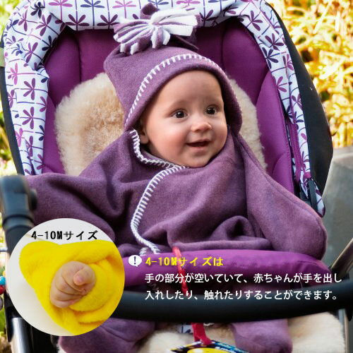 ※クロネコDM便不可商品です※ Tuppence & Crumble(タッペンスアンドクランブル) 素 材:フリース(ポリエチレンテレフタラート) 100 % サイズ:(約) W820 × H860 (mm) 重 量:(約) 249g 対象月齢:生後4ヶ月?生後10ヶ月頃 ・ボタンもファスナーもないから、着せる時も脱ぐ時もあっという間♪ ・手触り抜群のフリース素材だから、体温調節が苦手な赤ちゃんでも保温されて安心☆ ・もちろん繰り返しお洗濯OK! ・フードにはキュートなポンポンがついているので、 髪の毛の少ないベビー期でもオシャレにきまる♪ ・スターラップを着せたまま抱っこができて、 ベビーカーやベビーシートにもそのまま乗せられちゃいます! ・キュートで豊富なカラーバリエーションが揃っているので、 お好みの色がきっと見つかるはず☆ ・コンパクトにたためるので荷物になりません。 ※ホルムアルデヒド量測定試験合格品※4?10カ月サイズと11?18カ月サイズのスターラップは、動きの激しい赤ちゃんでも嫌がらずにサッと着せられます。