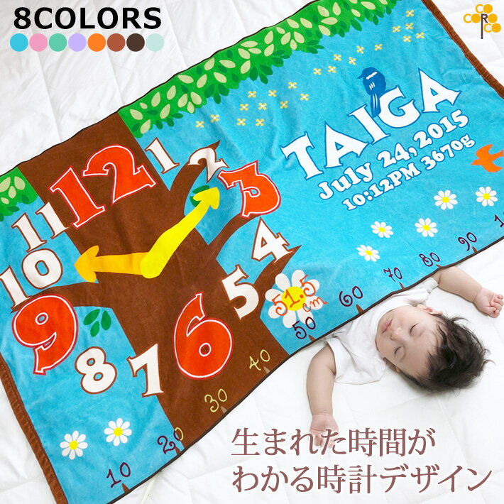 出産祝いに人気の名入れバスタオル!【アナログ時計が生まれたときの時間を表示】当店内の年間売れ筋ランキング第1位の「ツリークロック」バスタオルです。森にすむ小鳥たちと大きな時計の木のイラストがかわいい♪お子様のうまれた時間に時計の針の位置を合わせたタオルをオーダーメイドで作成します。産まれた時の身長も、お花のマークの場所を身長に合わせ数字を入れています。色鮮やかなタオルにたっぷり情報を詰め込んだ、ずっと記憶に残る記念の一枚に仕上げます。名入れは「お名前」と「お誕生日」の他、「出生時間」や「出生体重」、お子様の日々の成長がわかる「身長計測」の目盛りも入っています。(もちろん、お名前とご希望の記念の時間でも製作できます。)サイズは70cm×120cmで、小さなお子様にはお昼寝のタオルケット(ブランケット)代わりにもなり、成長してからもバスタオルとしての他、海水浴やスイミングスクール、プールや海遊びのビーチタオルにも使えます♪出産祝いとして贈った後も長くお使いいただけ、一生の宝物と喜ばれる当店だけのオリジナルタオルです。★お子様のお名前とデザインが合体★ココロコではデザイナーがタオル作成前に文字のバランスを調整して、刺繍ではなく元々のタオルのデザインに名前を入れます!ですから仕上がりの奇麗なオリジナルの名入れギフトができるんです。既製品タオルへの後入れ刺繍とは違い、セミオーダーで作るメモリアルな一点ものの今治製タオルは★世界でたった一つだけの贈り物★2人目3人目の出産祝いでも他とかぶらないお祝いとして喜ばれています。当店年間販売ランキング1位の名入れギフトです!大きな時計の針が赤ちゃんの生まれた時間に合わせてあるので、記念の品として長く大切にしていただけます。他とかぶらないおもしろさをもった出産祝いをお探しの方におすすめです!■ Item Specサイズ縦70cm×横120cm素材綿100% 安心の国産。国内有数の日本製タオル生産地、愛媛県今治(いまばり)市製。重さ約370gおもな用途出産祝い 内祝い 1歳の誕生日プレゼント 3か月・6か月祝い ハーフバースデー 百日祝い 100日祝い配送についてのご注意プリント前イメージ確認についてプリント前イメージの確認を希望の方は、約3営業日でメールにてデザイン画像をお知らせします。もしここで名入れ情報の変更がある場合は無料で修正します。■ご注意 イメージ確認「する」を選択された場合「イメージ画像を確認し、制作OKのお返事」を頂くまで実物の商品制作はいたしません。当店からのメールは必ずご確認ください。※デザインの変更は別途有料カスタマイズをご案内します。お気軽にお問い合わせください。↑ 出産祝いに!名入れバスタオルの全部のデザインを一覧で見て選べます。すべて今治製の高級バスタオル ↑「一生の宝物!」と喜ばれる名前入り今治製バスタオルお子様のお名前、お誕生日、出生時間、生まれた時の体重や身長をデザインに入れて、世界にたった一つの、特別なタオルを作ります。お風呂上がりに赤ちゃんの体を拭いてあげるとき、ベビーベッドに寝かせてそっとくるんであげるとき、産まれた時の感動がふと思い出される記念のギフト。出産祝いの他、ご自身の記念として、1歳のお誕生日に、ずっと大切に使い続けてもらえる特別なプレゼントとして選んでいただいています。なめらかで肌に優しい、綿100%ココロコの名入れタオルは日本有数のタオル産地、愛媛県今治市製。デザインだけでなくタオルの品質にもこだわりと自信をもってお届けします。 バスタオルを広げた場合、身長155cmのママでしたら肩からくるぶしくらいになります。既製品に刺繍する名入れではなく、タオルのデザインにお名前が入る本格的なオリジナルギフトです。うまれたばかりの赤ちゃんのおくるみにもどうぞ♪お子様が寝返りの時期から歩く、走りだす時期はもちろん、お出かけ時のベビーカーの膝かけとしてもお使いいただけます。 ★生まれた身長に目印つき★ タオルには約120cmまで測れる目盛が付いています。生まれたときの身長には目印をつけて表示。タオルに寝かせて写真をパシャリ。日に日に大きくなるわが子を一目でわかることができます♪ ★大きくなっても使える★また、タオルですので、Tシャツやロンパースのようにサイズが合わなくなること(サイズアウト)もありません。保育園や幼稚園でのプールやお昼寝用のタオルケット(ブランケット)としても使える大きさですので、長くご愛用いただけます。 ■名入れのお名前はアルファベットの他、漢字やひらがなカタカナへの変更も無料です。ご両親が一生懸命考えて選んだ漢字で記念のバスタオルを作ればより一層喜んでくれる出産祝いになるかも?!お祝いのギフトだからこそ品質・日本製にこだわっています■タオル表面はパイル部分を短くカットする「シャーリング加工」をしています。(※パイルとは表面の糸を「ループ状(輪)」にしたものです) タオルの毛先を