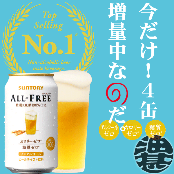 【サントリー オールフリー】 ノンアルコールビールテイスト飲料「オールフリー」は麦汁をベースに、 アルコールを生成しない製法を採用し、ドライバーの方や 休肝日をお考えの方にもお楽しみいただける「アルコール度数0.00%」を実現しました。 また、原材料の配合や仕込方法に工夫を凝らすなど、 当社機能系商品の製造技術を応用することで、「カロリーゼロ」「糖質ゼロ」を実現しました。 さらに、厳選した粒選り麦芽を天然水で仕込み、 ホップの中でも香り高いアロマホップを使用し、 一番麦汁だけを贅沢に使った満足感ある味わいです。 原材料/麦芽、ホップ、酸味料、香料、カラメル色素、酸化防止剤(ビタミンC)、甘味料(アセスルファムK) アルコール度数/0% 栄養成分(100ml当たり)/たんぱく質0g、脂質0g、糖質0g、食物繊維0〜0.1g、ナトリウム0〜7mg、プリン体0〜0.5mg 製造元/サントリー エネルギー(100mlあたり)/0kcal